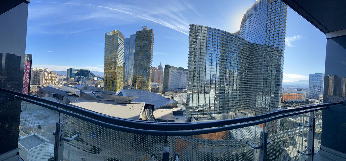 @Cosmopolitan_LV but we are back and it’s better than ever! Here’s a shot from our balcony, 21st floor Chelsea tower south facing City Center.pic.twitter.com/M4fmg1d4U7 – mjesto: The Cosmopolitan of Las Vegas