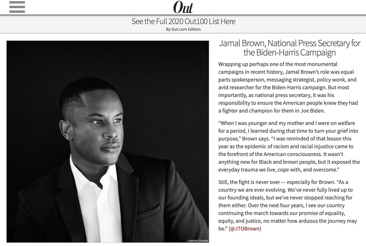 #RepresentationMatters. I am deeply grateful@JoeBiden gave me the opportunity to not only fight for our country, but to ensure LGBTQ+ people have a voice at the table. If you are LGBTQ+, know that your life matters and@JoeBiden &@KamalaHarris are fighting for you.#Out100 https://twitter.com/outmagazine/status/1329418788513730560 …pic.twitter.com/EwnGqGbOav