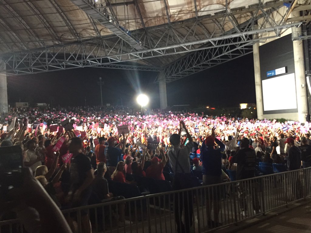 @QQBeautifulDove@JTSantucci@TeamTrump Trump was just on with Rush & said his Tampa crowd was 25,000. Tim Kaine had 30 people in Palm Beach -