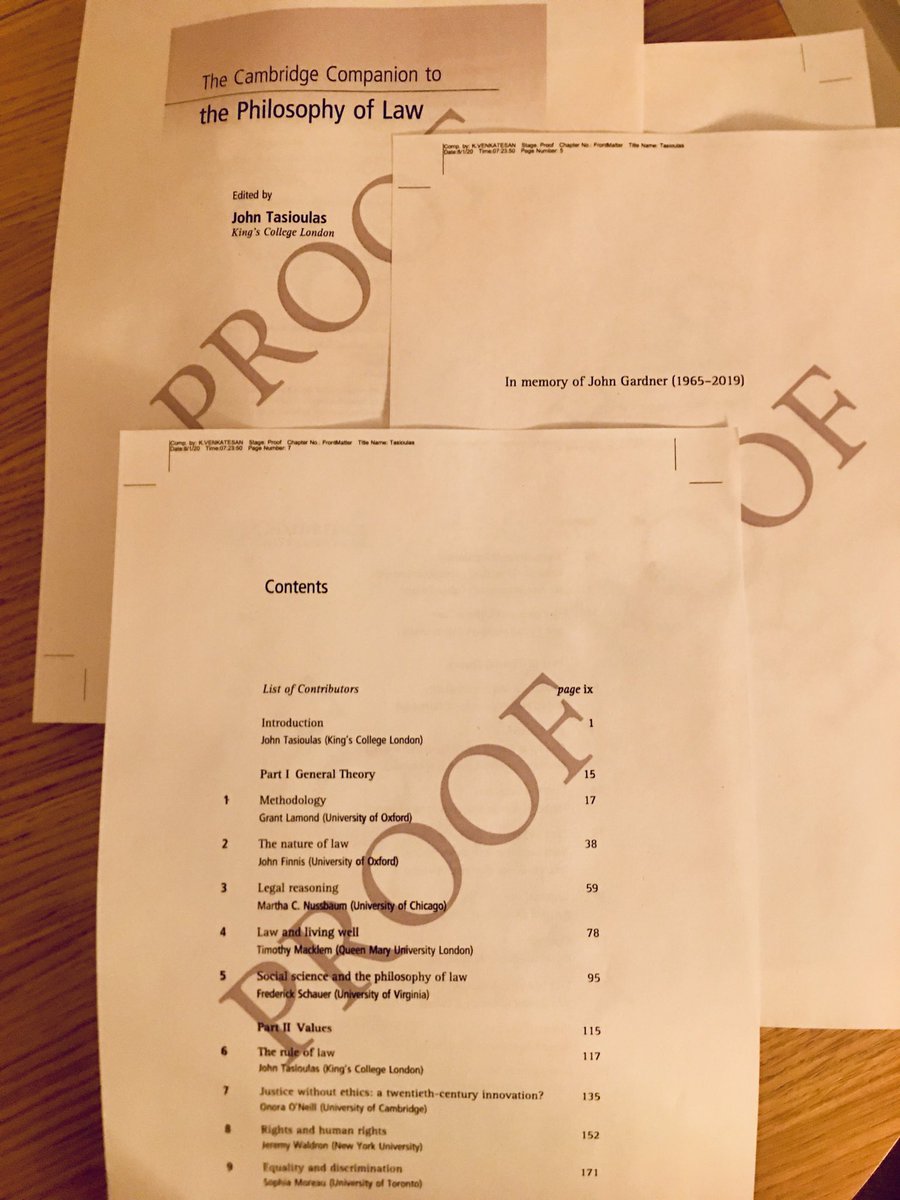 Delighted to receive these proofs of The Cambridge Companion to the Philosophy of Law. Gunning for publication in May.pic.twitter.com/dGk5TsgtVG