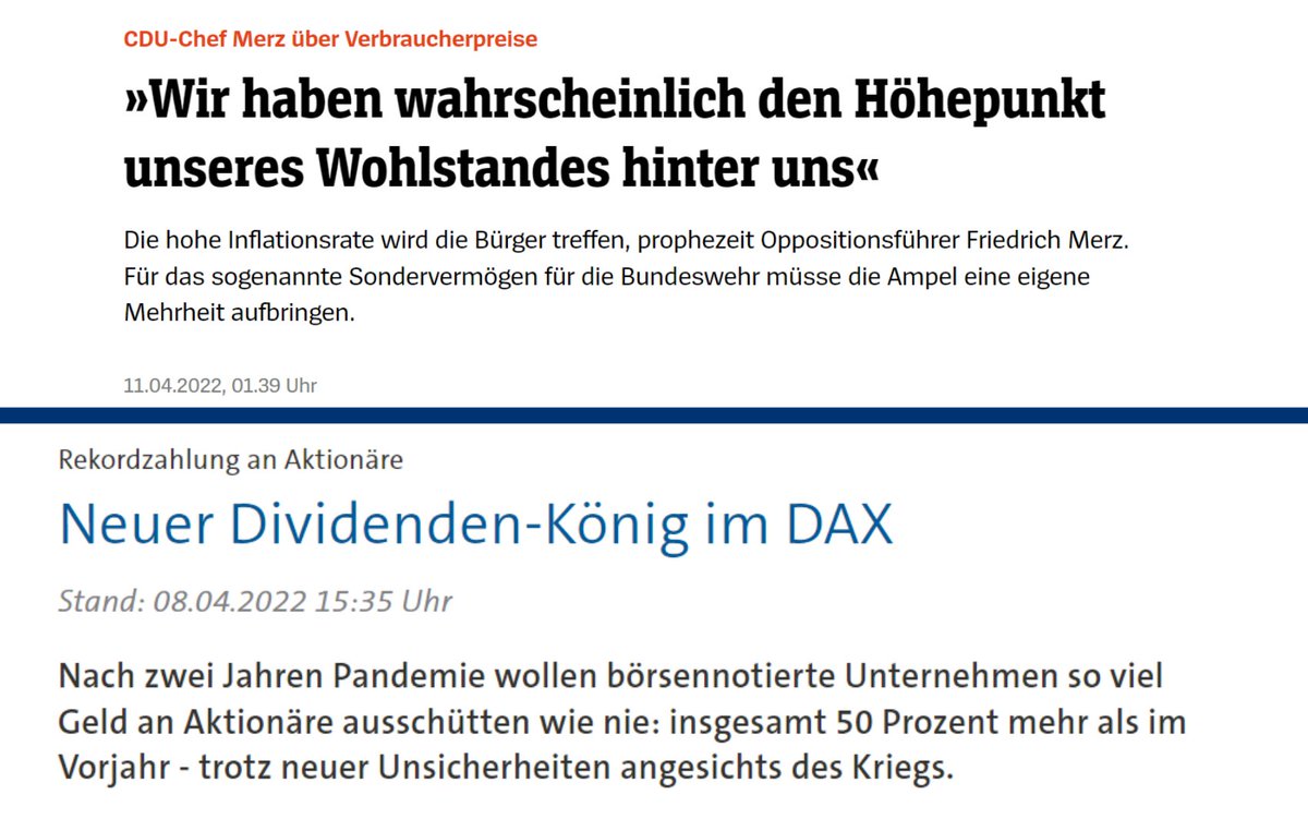 #Merz den Wohlstandshöhepunkt für einige (!) für beendet erklärt, schütten Konzerne Milliarden an#Dividende aus. Auch dank Staatshilfen. Im Ernst?pic.twitter.com/CRlCsfbsiD