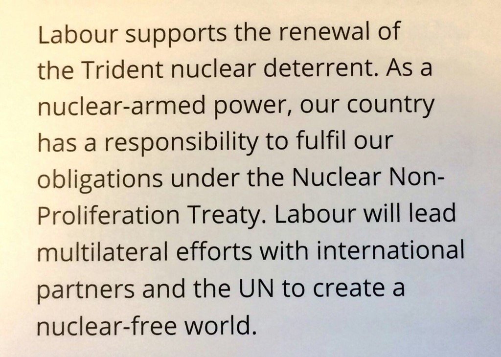Unless Corbyn wins, in which case Trident will be binned. Corbyn only follows his own agenda, manifesto promises mean nothing to him.