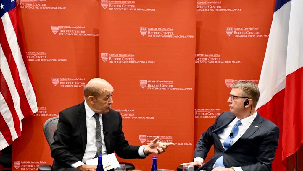 Après l'#AGNU, heureux de retrouver mon ancien collègue et ami Ashton Carter pour échanger avec les étudiants de #Harvard @Kennedy_School sur les remises en cause du multilatéralisme et la détermination de la France à le refonder avec les autres puissances de bonne volontépic.twitter.com/czwV08JDlu