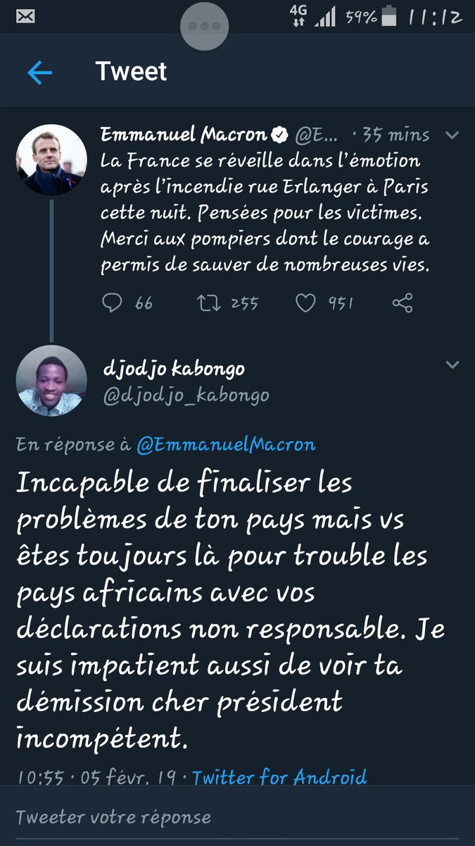 Svp chercher un moyen de finir avec le gilet jaune et arrêté de dire tes propos non responsable sur la RDC. Vous êtes les gens qui cherche nuit et jour à trouvé des moyens pour déstabiliser l'Afrique précisément la RDC. Les irresponsablespic.twitter.com/O8hgwAwCJO