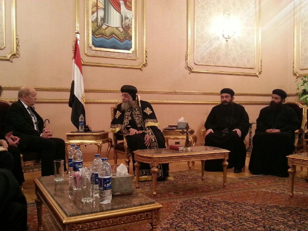 @JY_LeDrian: Hommage aux Égyptiens coptes lâchement assassinés en Libye, avec le pape Théodore II, au Caire.pic.twitter.com/ry3k0NSsRI
