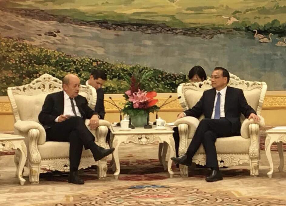 Entretien avec le Premier Ministre de la République Populaire de Chine, Monsieur Li Keqiang. L’occasion d’échanger sur notre relation bilatérale ainsi que sur les grands enjeux internationaux et régionaux du moment.pic.twitter.com/1TLnRq5GWa