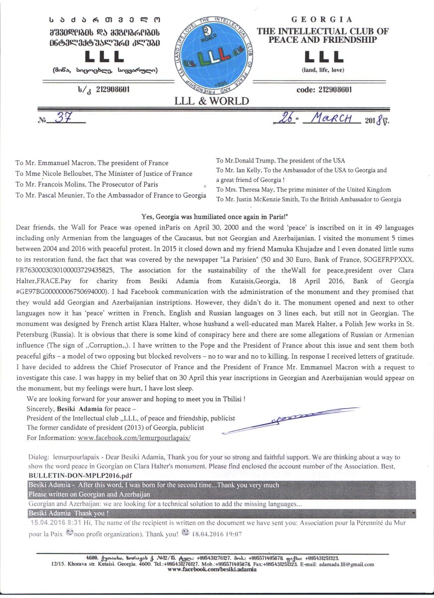 Dear Jean, please support word ,,peace,, on Georgian !pic.twitter.com/ixQjmkMo1n