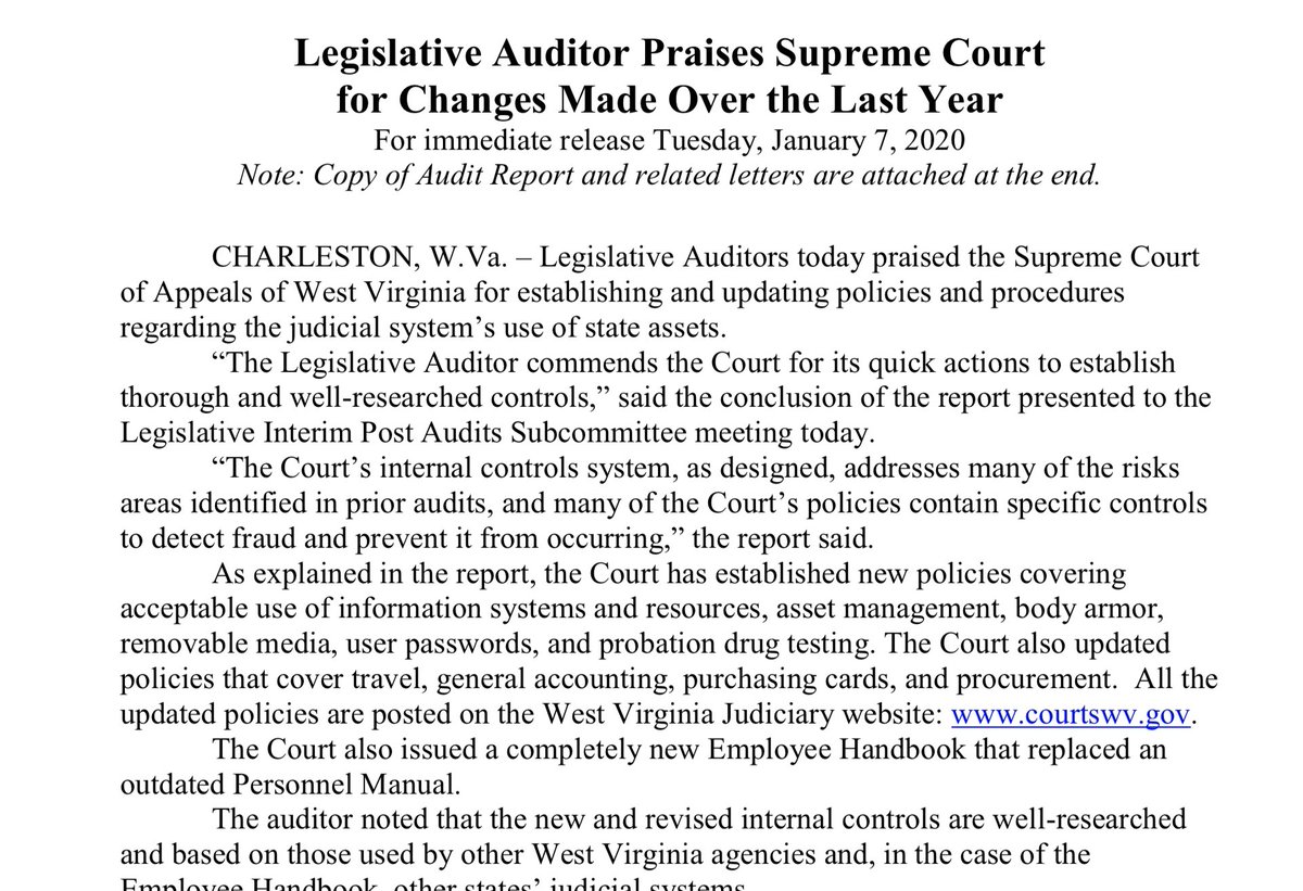 @SpeakerHanshaw and President@SenCarmichaelWV for your kind remarks at today’s interim meeting. We are proud of our work on accountability and transparency and appreciate the recognition from the Legislative Auditor. Full press release here http://www.courtswv.gov/public-resources/press/releases/2020-releases/jan7_20.pdf …pic.twitter.com/qgICbEvJLR