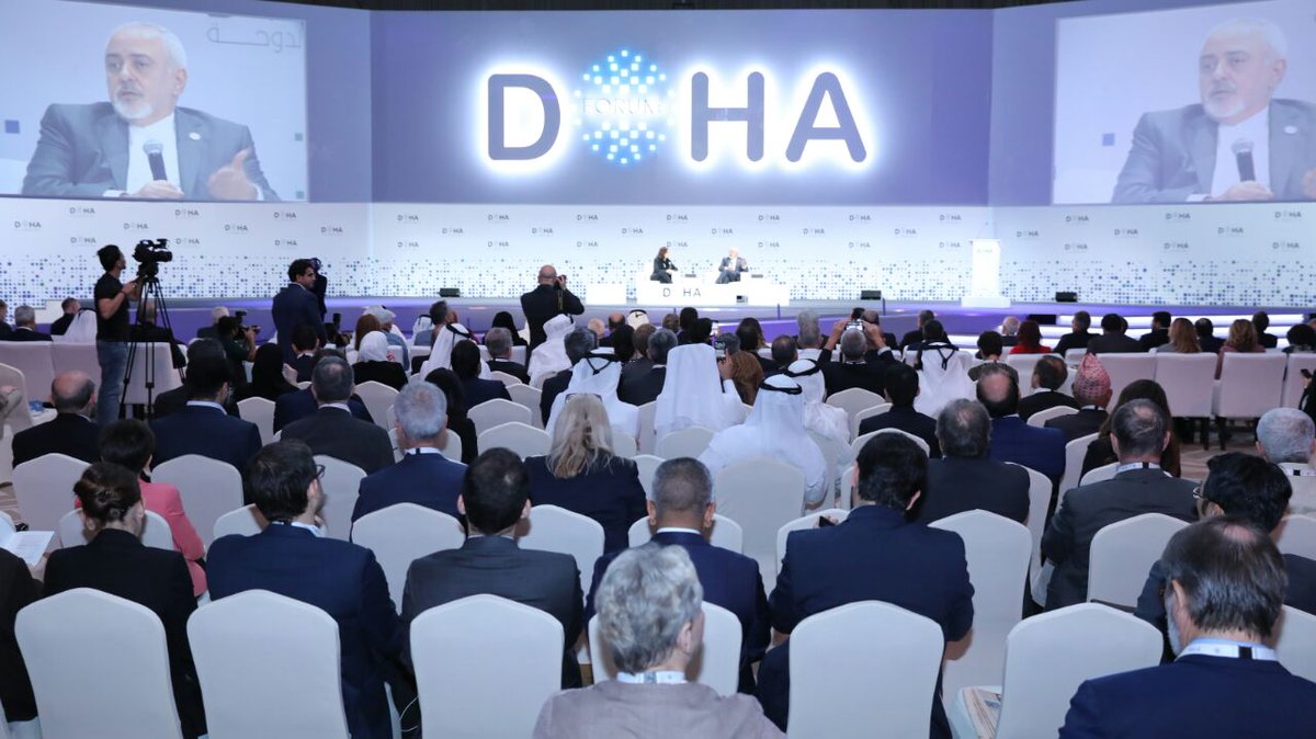 @DohaForum: Sanctions have never worked. They hurt ordinary Iranians but don't change policy. It was U-turn on part of US which allowed#IranTalks to proceed. Same dynamic today.#Iran and E3+2 are at table. It is US which has decided to walk away and sow violence & chaos.pic.twitter.com/kD9DQq2kR5
