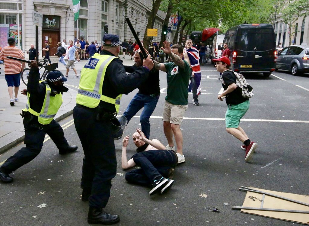 Police beating peaceful protesters at FREETOMMY protest