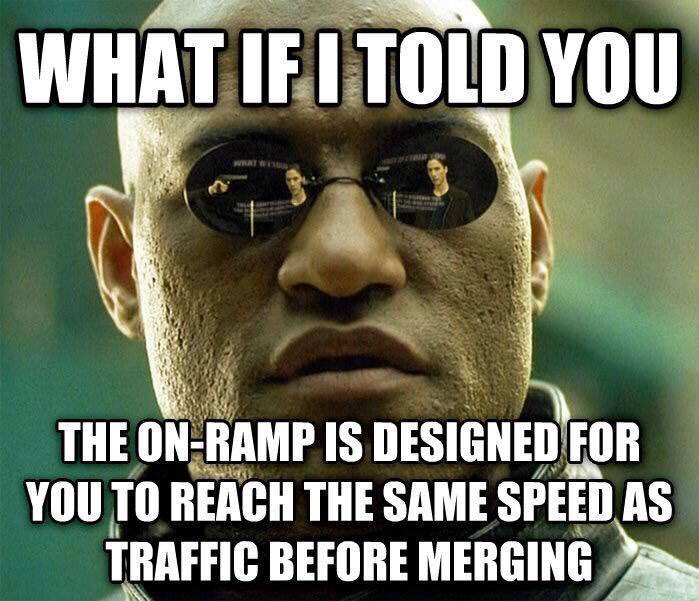 100% this - I'm usually going faster than the traffic on the highway when I'm merging - if you don't you all should try it - it seriously works! :)