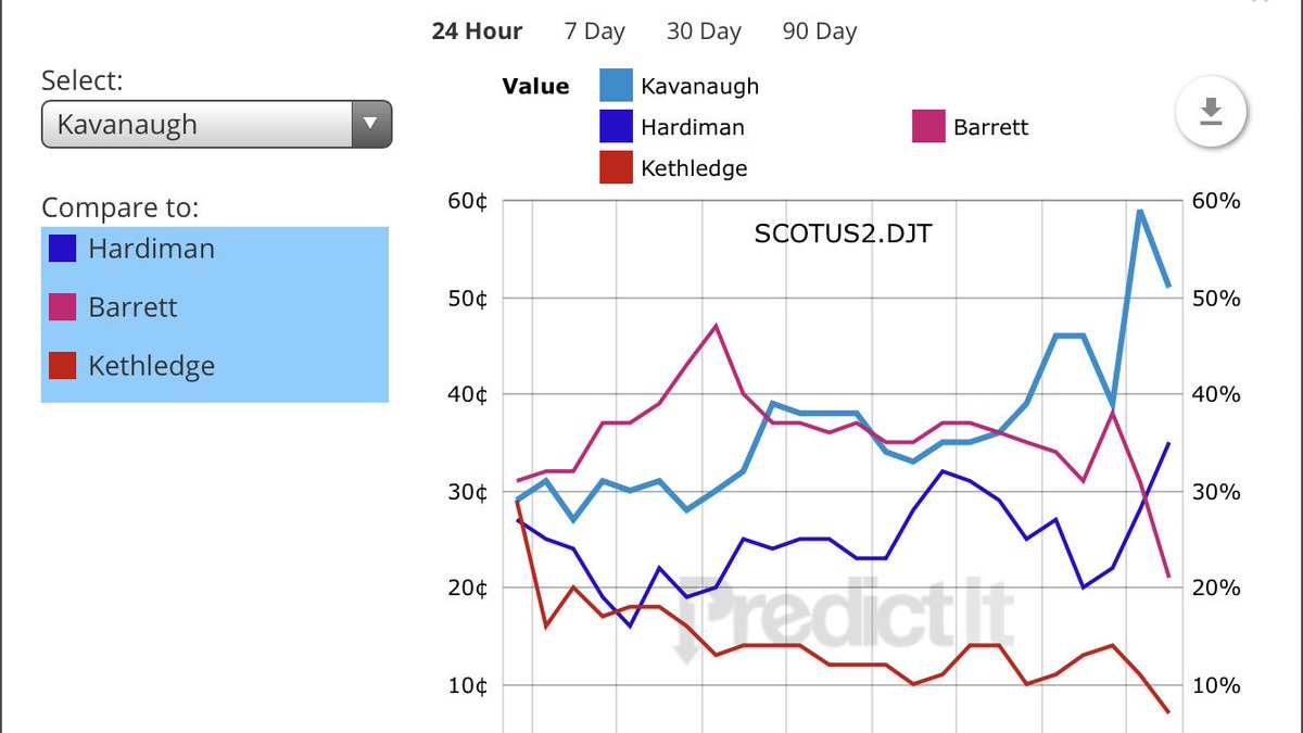 24-hour chart for #ScotusPick via @PredictItpic.twitter.com/XRbLfyfMAJ