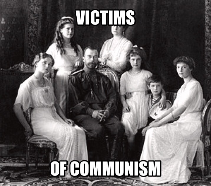 Don't add a mistake to another mistake. The Russians were literally starving under the Romanov. Communism was supposed to stop this but of course it didn't. But don't make heroes of this family.
