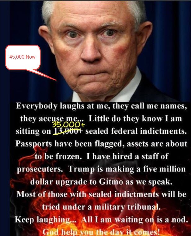 Trust sessions I think has double meaning...for the believers it means exactly that. What if this is all done so that the left trusts him and puts him up on a pedestal only to have the rug pulled out when all seems to be going their way. Trust the plan Enjoy the show.