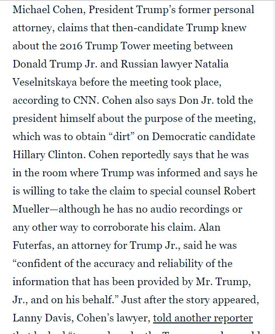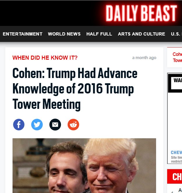 Look how bad fake news propaganda-rag Daily Beast reported the Michael Cohen story in July. They edited out the anonymous source part and claimed Cohen actually said all these things. Ironically, he has a libel case herepic.twitter.com/ru4EPOBJaH