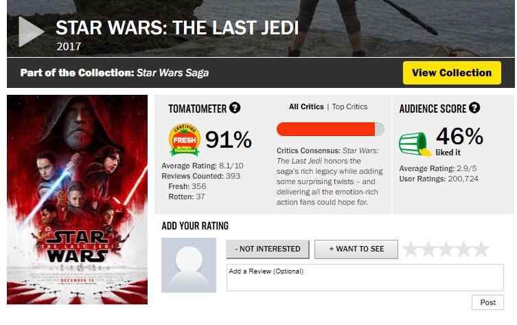 IMDB Top 250 movies. None of the recent Star Wars movies are listed, only the first three are on the list. Tells you something.https://m.imdb.com/chart/top?ref_=m_nv_mv_250 …
