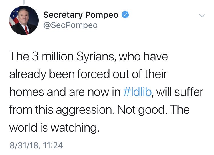 By definition, the Syrian govt cannot act in “aggression”, as Secretary Pompous states, when liberating Syrian territory from largely non-Syrian Jihadist terrorist fighters. It shows that this man is a duplicitous liar.