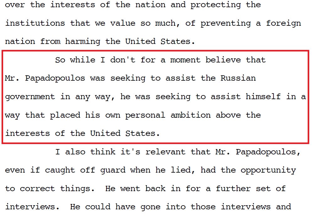 Judge Moss in yesterday's sentencing of George Papadopoulos. It cost the taxpayer $28 million to reach this collusion...umm...conclusion.pic.twitter.com/5Q5Osk1o1w
