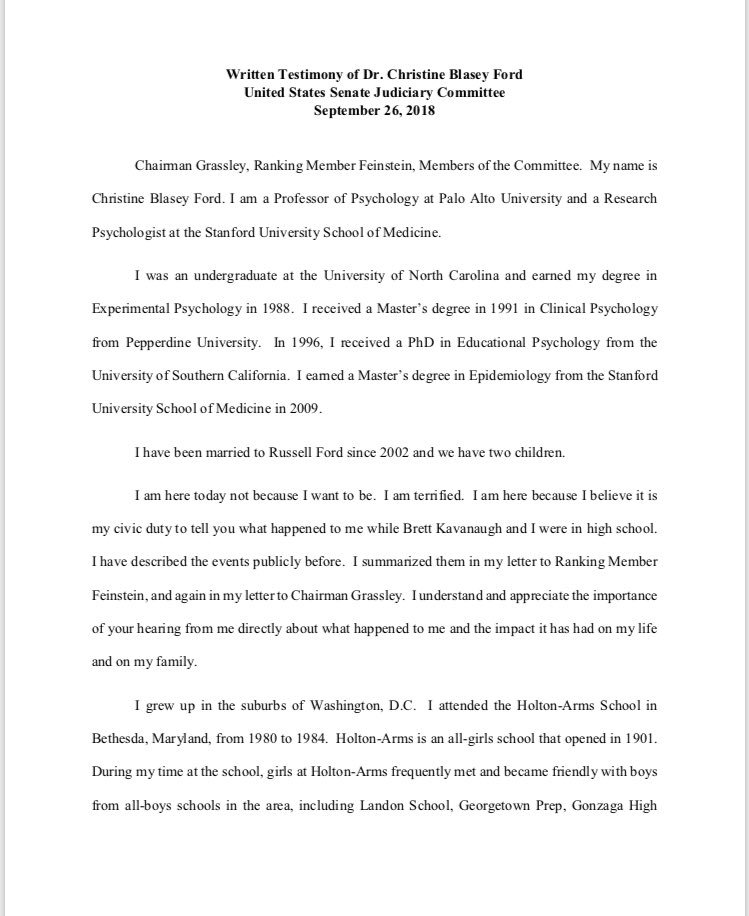 #Breaking OAN has obtained a copy of Dr Blasey-Ford’s written testimony to the Senate committeepic.twitter.com/SbPDxG4Q7u