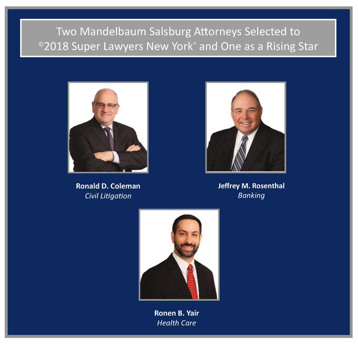 Congratulations to Ronald Coleman and Jeffrey Rosenthal for being selected to 2018 Super Lawyers New York, and Ronen Yair as a Rising Star! pic.twitter.com/I3oeWkgeGG