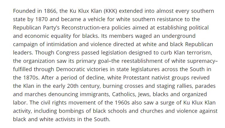 From 1868 Questions & Principles of the KKK ...to be asked candidates before Initiation Rites "2. Are you now, or have you ever been a member of the Radical Republican Party" https://www.albany.edu/faculty/gz580/his101/kkk.html …