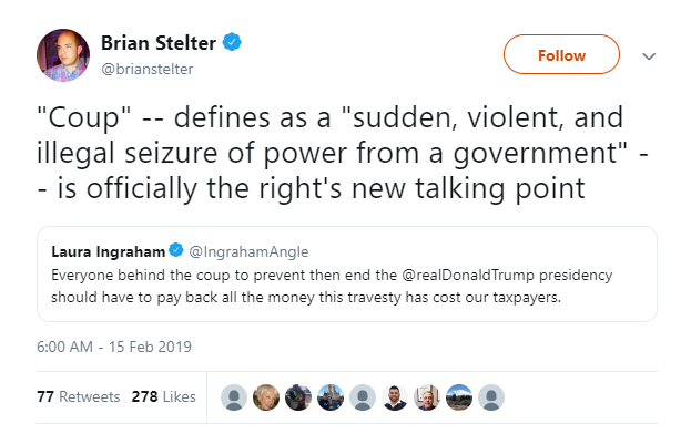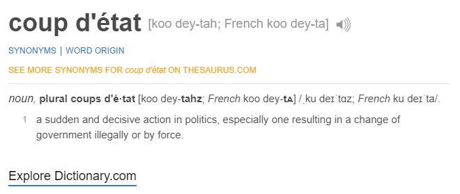 But he is right. Why are some insisting on using the term "coup"? It isn't. It is a Constitutional process. It would never have worked. Pence would not agree and there was not 2/3 of Congress in board!