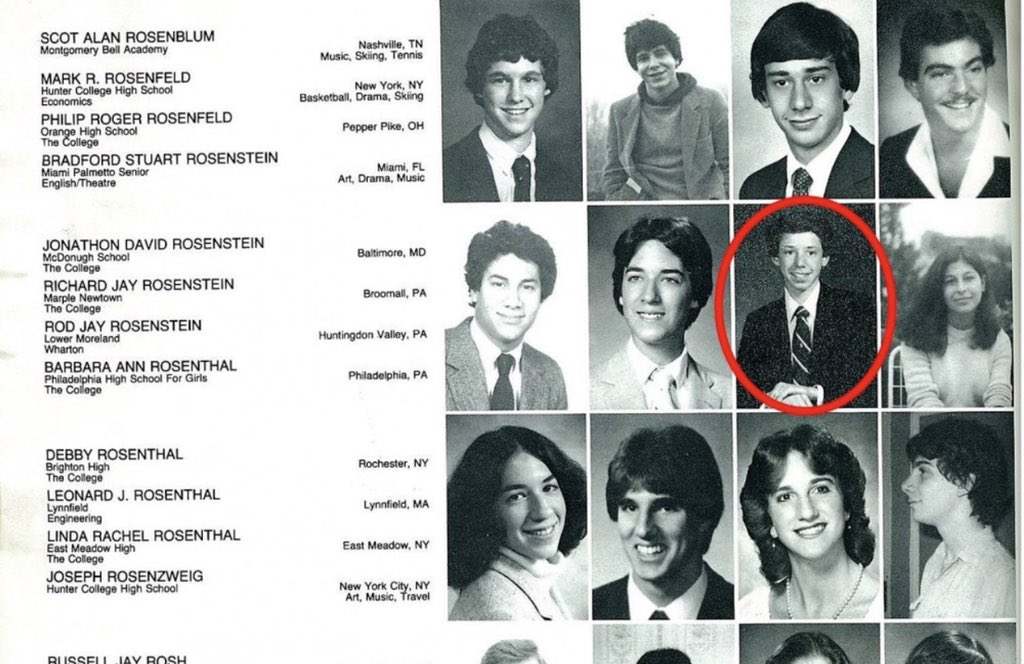 I like Bradford Stewart Rosenstein’s style much better than the one we know. Sweet 70’s porn stache, butterfly collar, and from Miami. Wonder what he grew up to be?