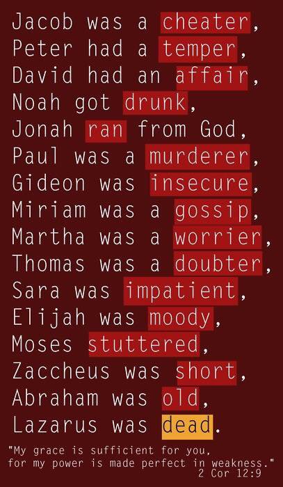 Reading Hebrews chapter 11, its good to know that God sees their faith and not their mistakes... a good lesson for us to achieve.