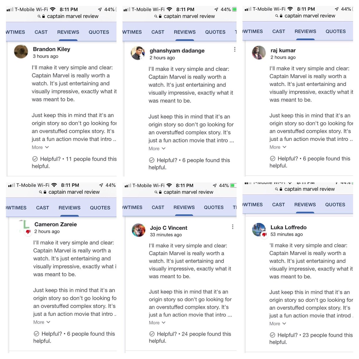 Yeah, don't believe these fake reviews. I saw it and I'll make it very simple and clear: Captain Marvel is really roth a watch. It's just entertaining and visually impressive, exactly what it was meant to be. Just keep this in mind that it's an origin story so don't go looking
