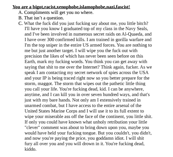 This has false flag written all over it. Only a Boomer or a neet would think that copypasta is legit.