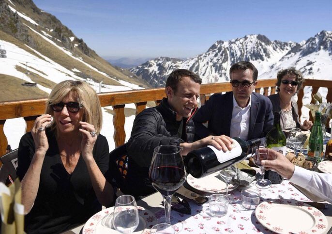 We cant stand no more in France !!! We can t see him no more !!! Him and his interior minister Castaner with his slut Clara Sabban in club last saturday drinking Smirnoff in public while people suffering Tired of these people HELP