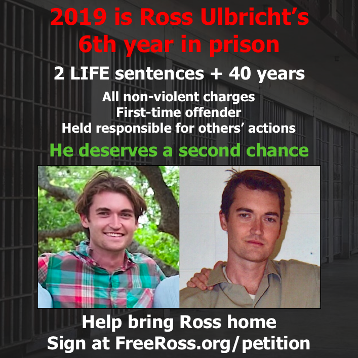 Meanwhile, Ross Ulbricht, a 1st-time offender who created a free market where CONSENTING adults chose to exchange BOTH legal & illegal goods, is serving 2 LIFE + 40 yrs WITHOUT parole! Join the 142,000 who have already signed the petition: https://FreeRoss.org/petition  #FreeRoss2019pic.twitter.com/NTO6m7SdQA