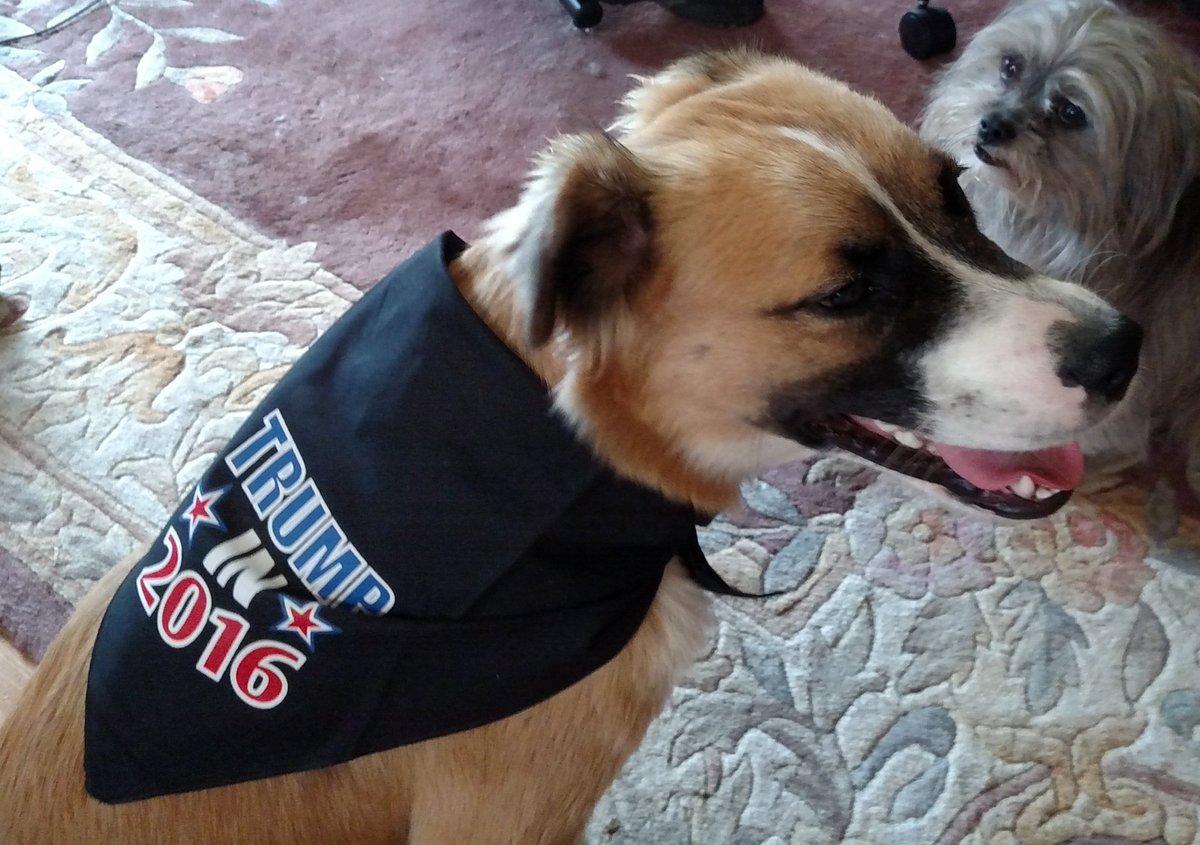 This was SO amazing. I was listening to @realDonaldTrump & Dexter, who never ever EVER wants to sit on my lap, was clamoring to get up and listen to Trump!