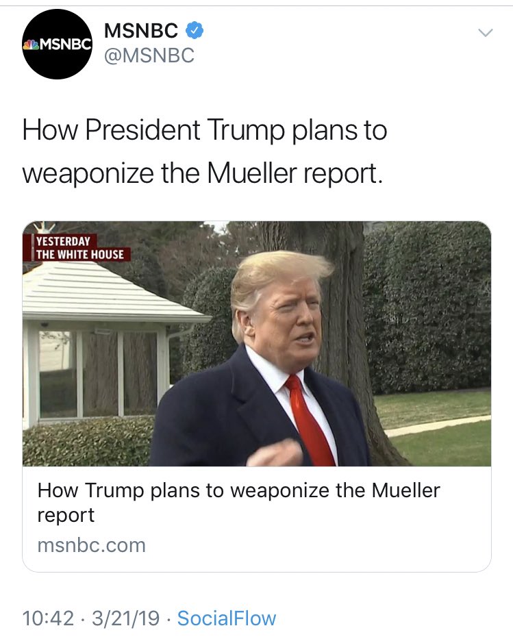 @realDonaldTrump is not making this report a weapon it already is , he is just going to use it against those who created it.#FridayThoughtsThanks. Twitter will use this to make your timeline better. UndoUndo