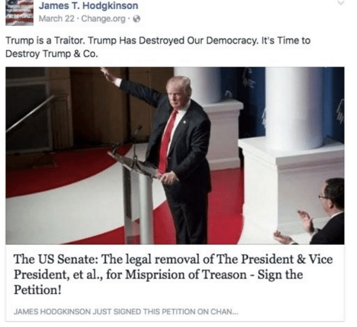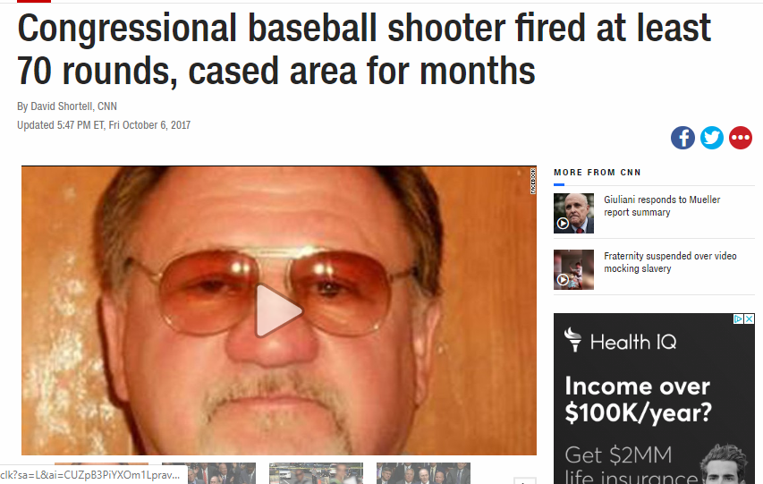 Ferguson MO was within an hour''s drive of Hodgkinson's home. His evening news was likely filled with replays of the enraging lie that Brown said, "Hands up, don't shoot," as he was shot by a cop. MO Sen Chappelle-Nadal ['I hope Trump is assassinated'] lived w/in an hour, too