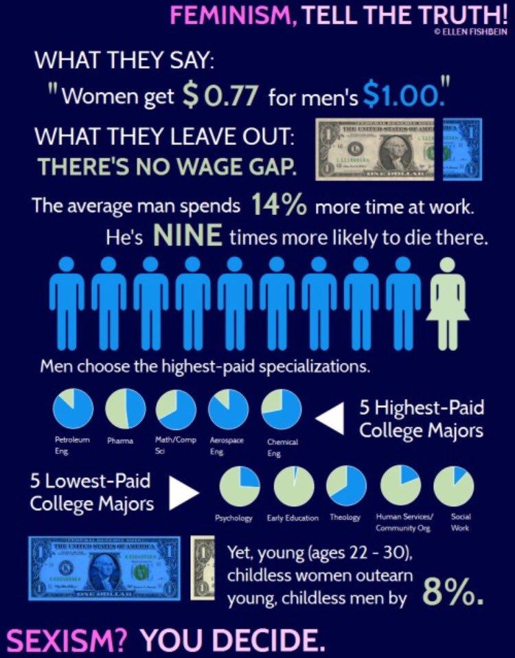Women want equal pay. They must do equal work. ! If a man works 60 hrs a week. Then she should also ! Take the mans job. Do the mans work !!