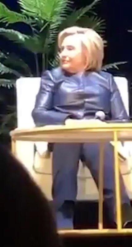 In this video, Hil-liary looks like a constipated, leather-wearing Minnie Me.