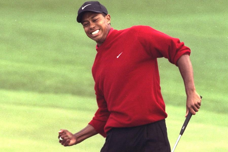 Only when he is within 10 shots of the lead. Rarely has he worn a non-red shirt on Sunday.