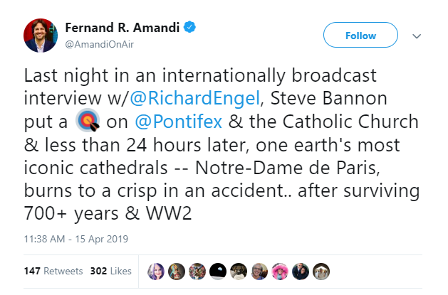 Let's not forget we have the right-wing conspiracy theorists out, too. Renovation work often leaves plenty of material behind for fires. We're talking about an 850 year old building here. I'm just as saddened about this as anyone, but the fire isn't even out yet.