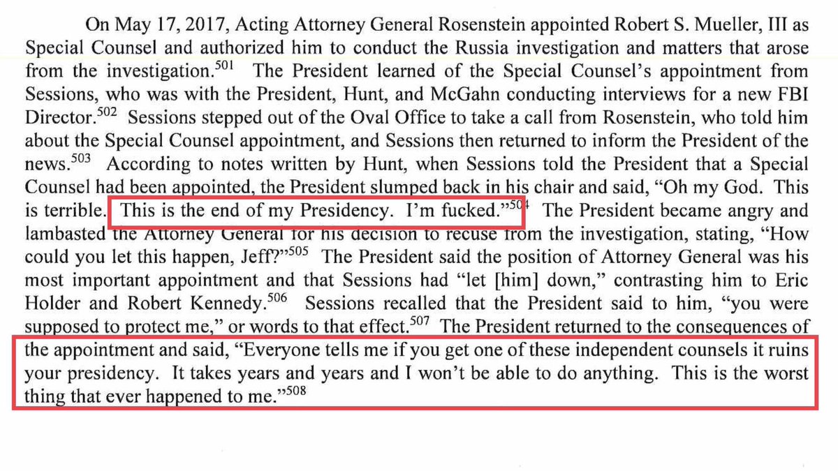 No doubt. The “I’m fucked” came from the premise that he knew the fix was in. The swamp arranging a special counsel. It had nothing to do with a narrative like “ oh shit I’m caught”. It’s more, oh shit- they’re gonna screw me now. The media is So f-ing dishonest