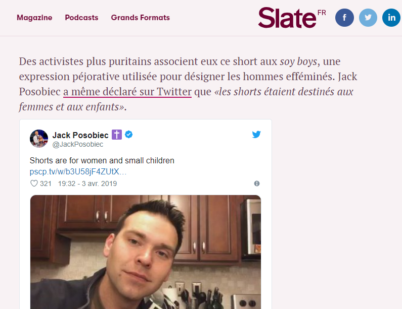 More Puritan activists associate these shorts with soy boys, a pejorative expression used to describe effeminate men. Jack Posobiec even said on Twitter that "the shorts were for women and children".
