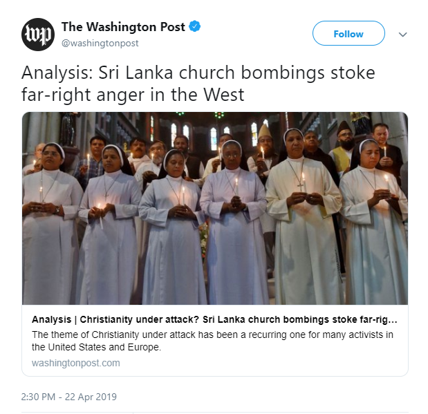 I think now instead if Easter Worshipers, they are trying to use the term Far-Right. Anything not to say Christians. YES, we Christians are angry that 200 of us had our lives cut short by hatred. YES, we are angry about that.