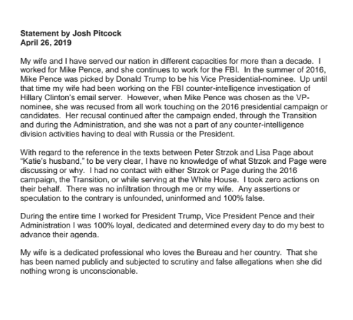 Page and strzok isn't accusing him and his wife. These were private messages between the two talking about what was talking place. Also remember Mueller team erased their phones and IG was able to recover some of their texts and emails, which was turned over to Congress
