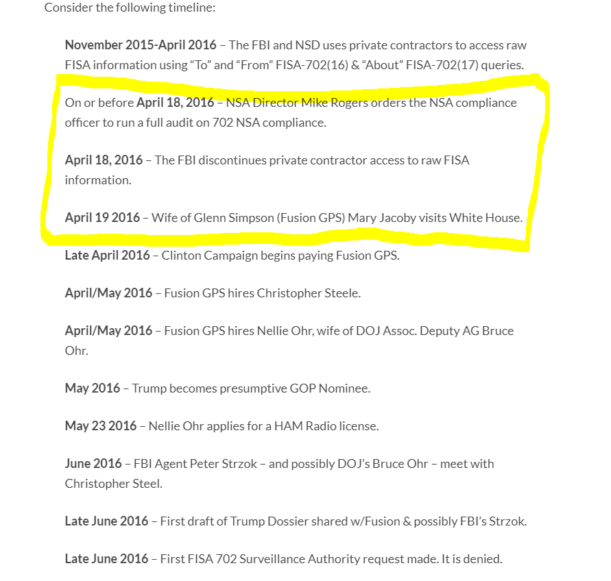 Got this from @themarketswork site, the timeline is interesting. Right after Rogers shut down contractor access to NSA database Mary Jacoby shows up at the White House.pic.twitter.com/pw3HeLPNSe