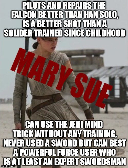 Anakin was the greatest pilot with no more than time spent building a racing pod. Luke was using blasters and sabers with no more than a few sentences of coaching. The force is plot magic. Applying it to a woman doesn't make her a Mary Sue.