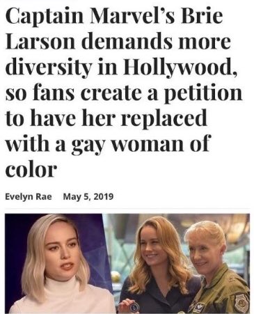In light of this petition..will Brie Larson "check her privilege" & step aside? How strong are her convictions? Will she live by the standards she annoyingly pontificates every chance she gets? Heh, I'm not holding my breath lol