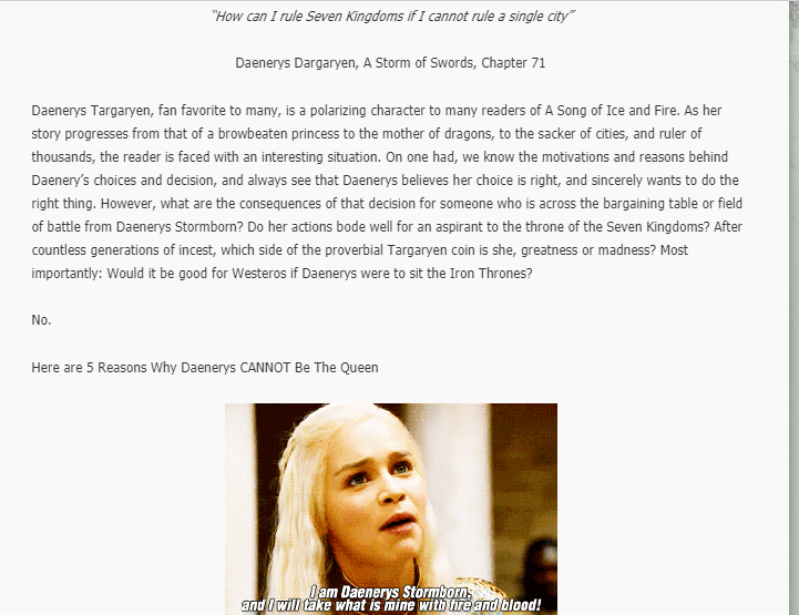 5 Reasons Daenerys CANNOT Be The Queenpic.twitter.com/Igrm8kRYMO