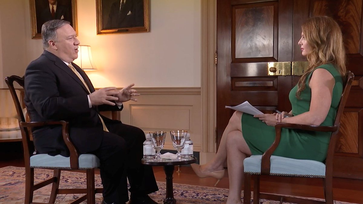 Don't miss our 3-part exclusive interview with @SecPompeo. OAN Chief White House Correspondent @EmeraldRobinson sits down with the Secretary of State to talk about Iran, China & more. #OANN pic.twitter.com/jl43taOTrM