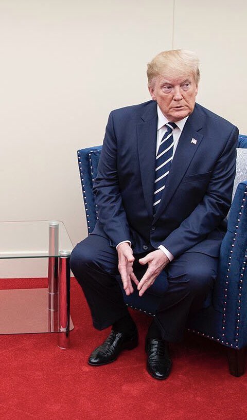 Always leaning forward, at-the-ready. Totally engaged. Serious with business. That’s Trump.