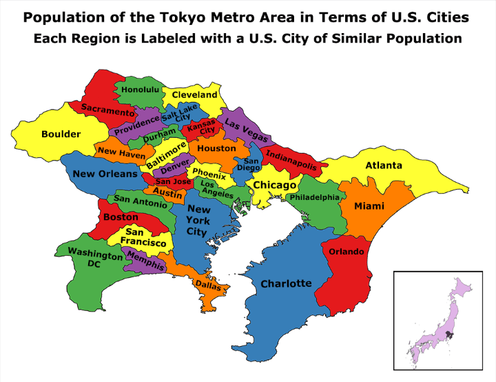 About 30% of the Japanese population lives in Tokyo. About the entire population of California fits in Tokyo.